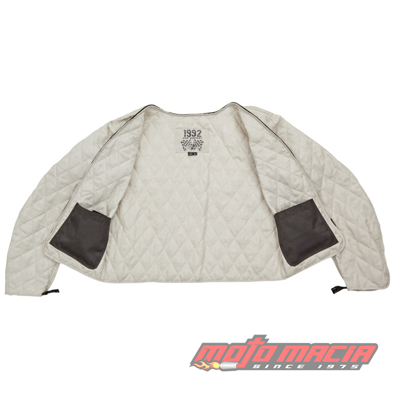 – Top stitched 1.0 to 1.2mm drum dyed cowhide, specifically tailored for a relaxed fit – Pockets for optional armor at the shoulders, elbows & back – Zip-in quilted full sleeve liner – 2 inside utility pockets – 4 outside pockets – Adjustable neoprene-lined mandarin collar – Adjustable waist and cuffs – 1.5 Storm flap at main zipper – YKK zippers through-out – Subtle tone on tone badging – Ample reflective striping